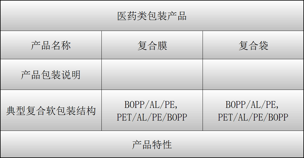 我们药品用软包装制品包括各种复合袋和复合膜。